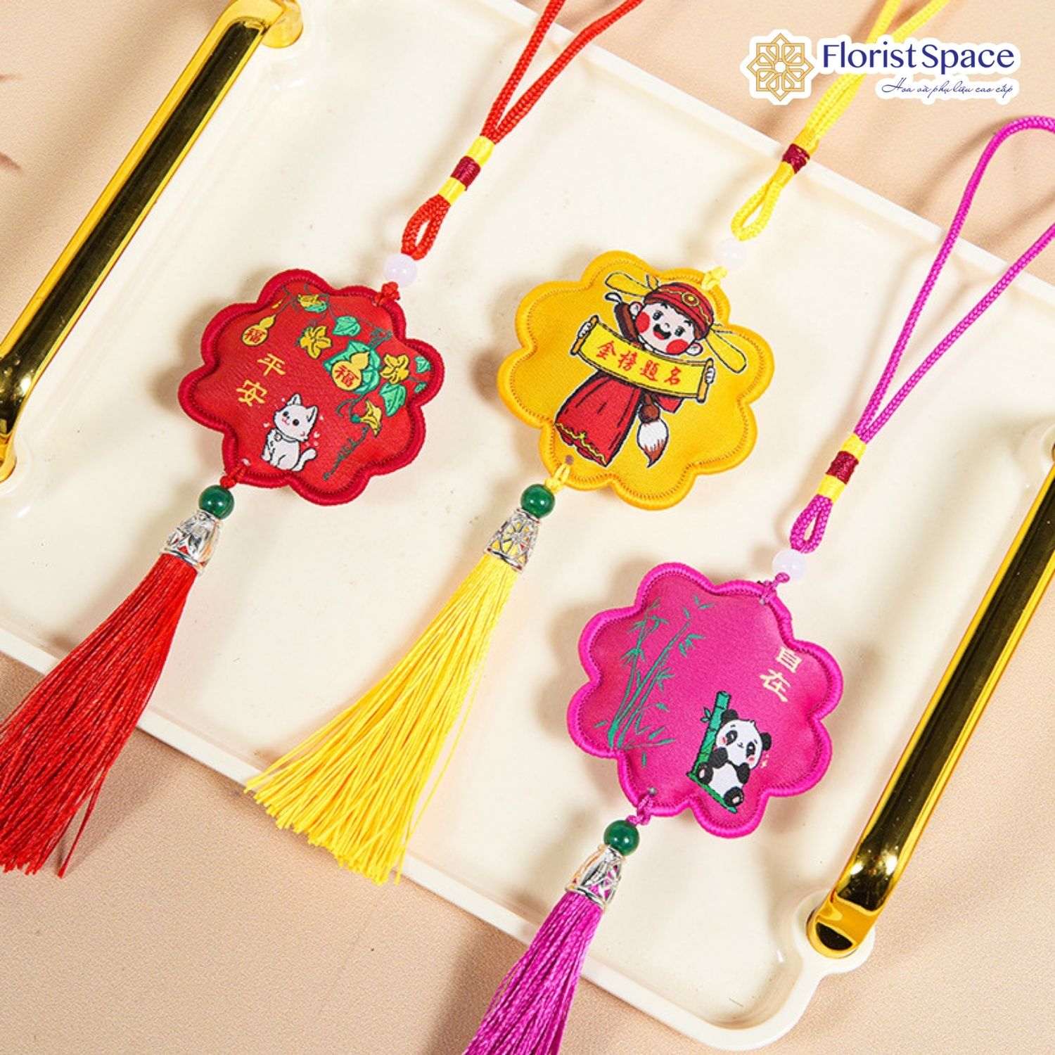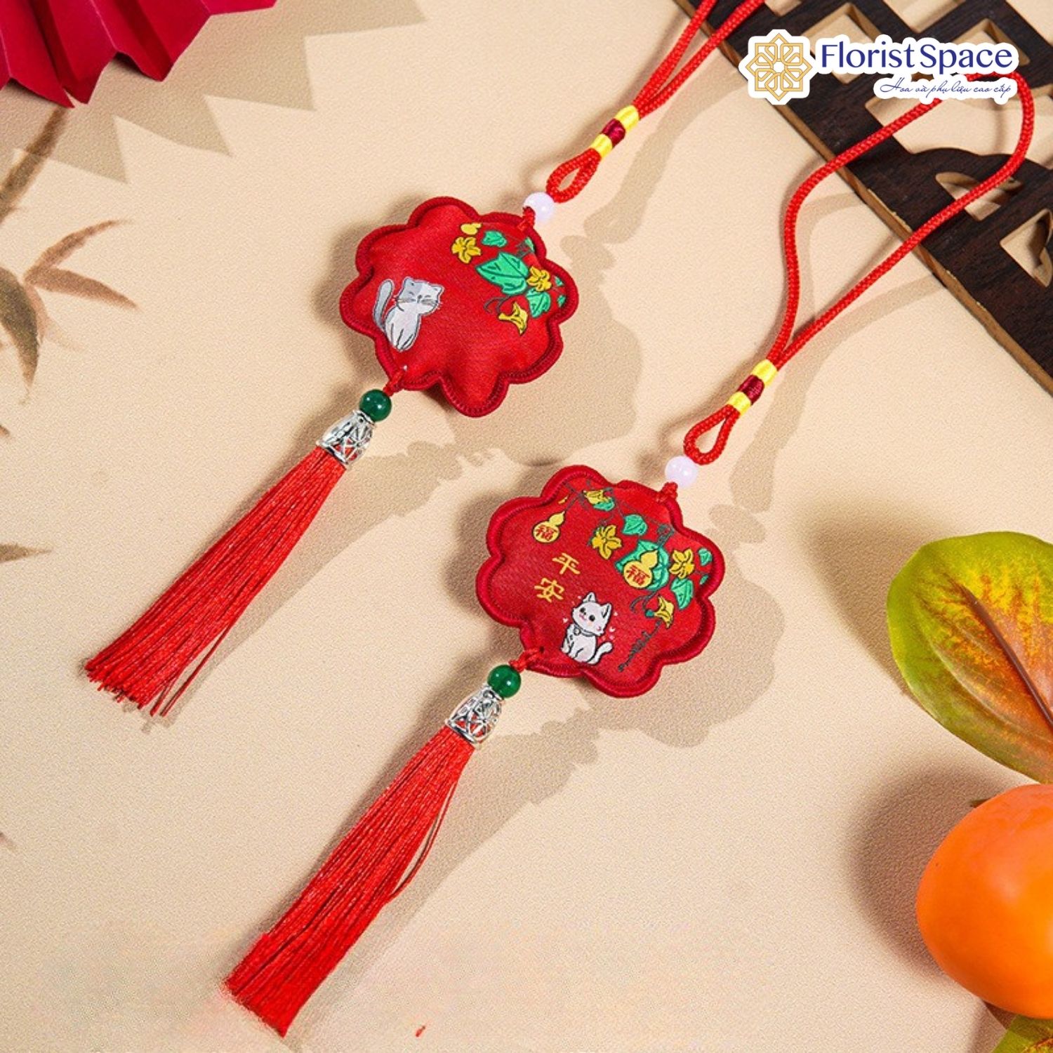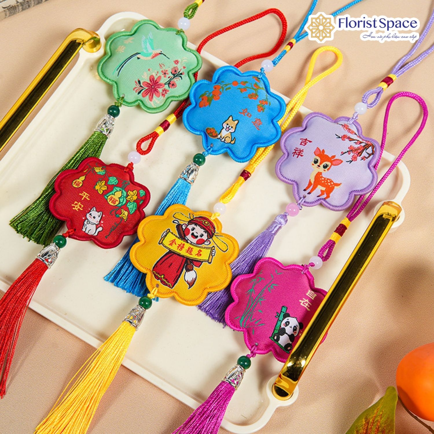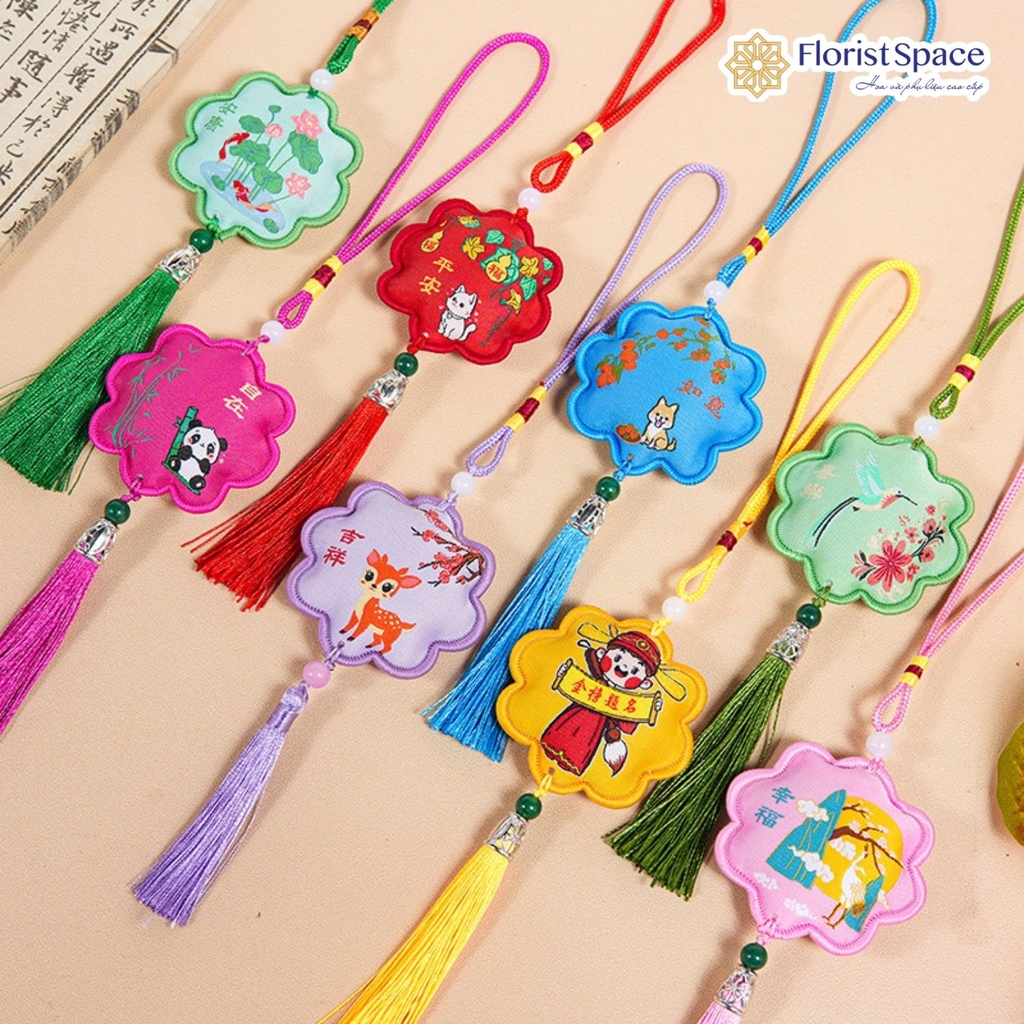 DÂY TREO TẾT HÌNH HOA THÊU LINH VẬT