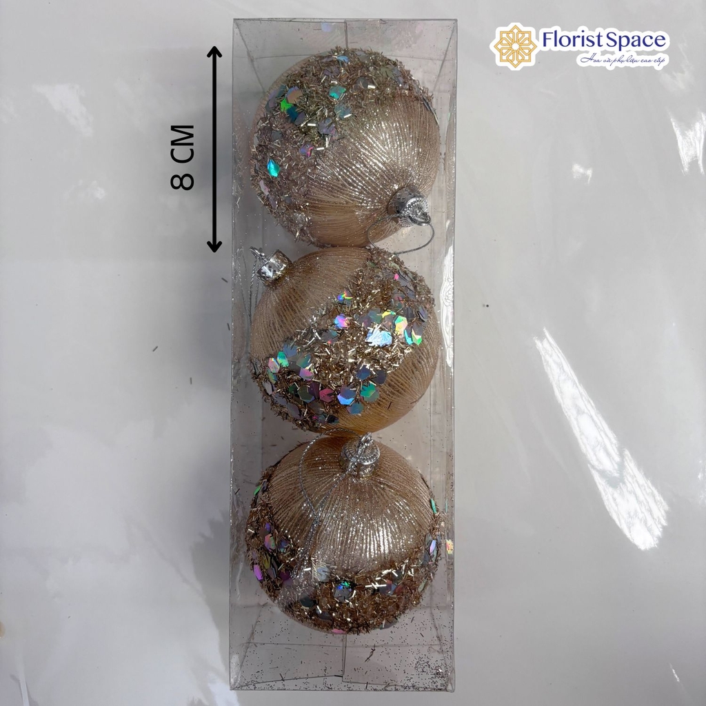 Hộp Châu Giáng Sinh Ánh Kim Đính Ngọc - 3 Trái - 8 cm - MC